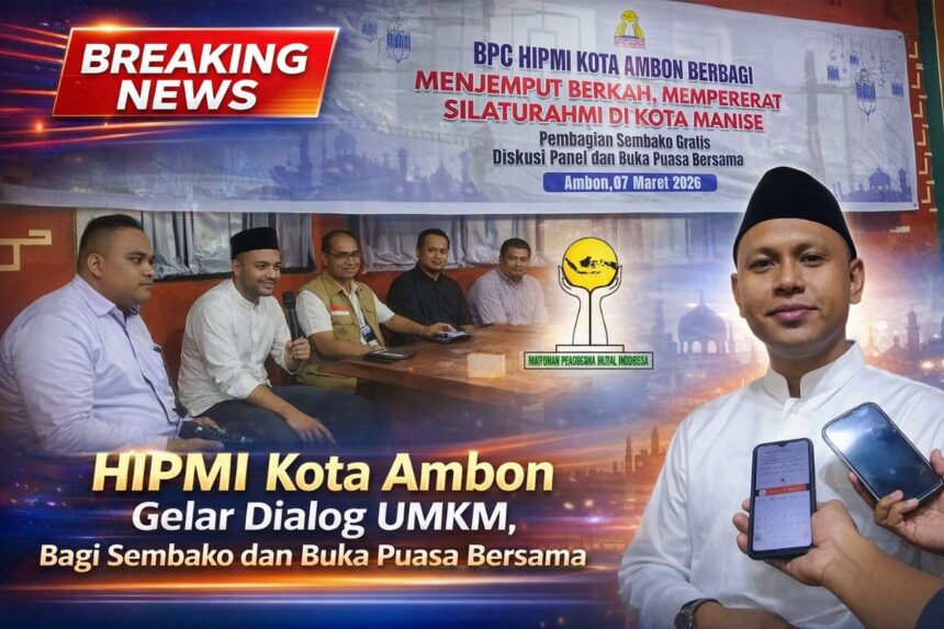 JURNALMALUKU – Badan Pengurus Cabang Himpunan Pengusaha Muda Indonesia (BPC HIPMI) Kota Ambon menggelar kegiatan silaturahmi Ramadan yang dirangkaikan dengan dialog interaktif pengembangan UMKM, pembagian sembako, serta buka puasa bersama. Kegiatan tersebut berlangsung di Caffe 95 Kota Ambon, Sabtu (07/03/2026).