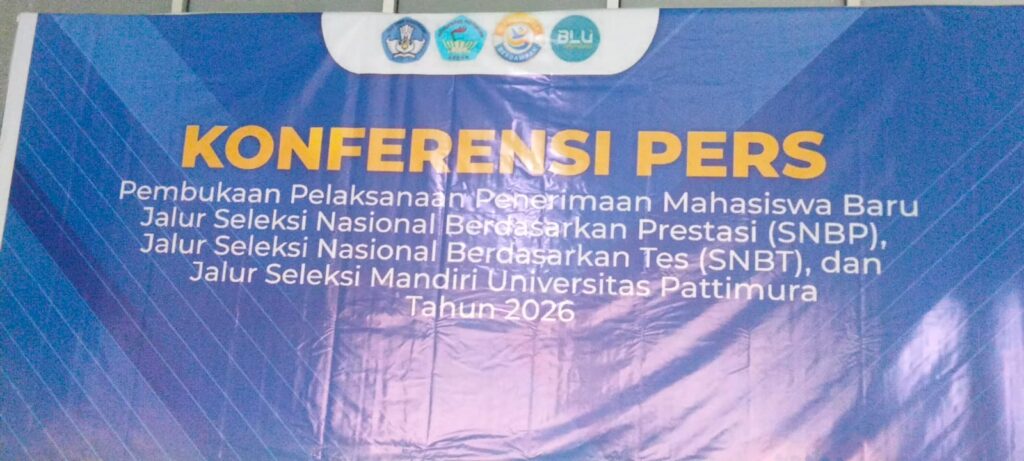 JURNALMALUKU – Universitas Pattimura (Unpatti) menggelar konferensi pers pembukaan pelaksanaan Penerimaan Mahasiswa Baru (PMB) Tahun 2026 melalui Jalur Seleksi Nasional Berdasarkan Prestasi (SNBP), Seleksi Nasional Berdasarkan Tes (SNBT), dan Seleksi Mandiri. Kegiatan berlangsung di Lantai 2 Rektorat Unpatti, Jumat (20/02/2026).