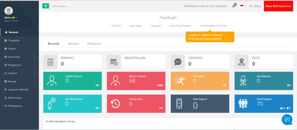 Dalam penerapan kali ini, terdapat empat aplikasi utama yang menjadi bagian dari sistem baru. Aplikasi pertama adalah personalia, yang memudahkan pengelolaan data pegawai mulai dari proses penggajian, mutasi, hingga pengangkatan pegawai yang dijadwalkan otomatis oleh sistem. Kedua, aplikasi gudang, yang membantu staf dalam mencatat barang masuk dan keluar setiap bulan secara lebih akurat dan transparan. Ketiga, aplikasi akuntansi dan keuangan, yang menjadi sarana utama dalam mencatat seluruh transaksi keuangan perusahaan serta mempermudah pembuatan laporan akuntansi secara cepat dan terintegrasi. Sementara itu, aplikasi keempat adalah smart presence, sistem absensi berbasis face recognition yang memungkinkan pegawai melakukan absensi dengan pemindaian wajah sehingga data kehadiran menjadi lebih akurat dan tidak dapat dimanipulasi.